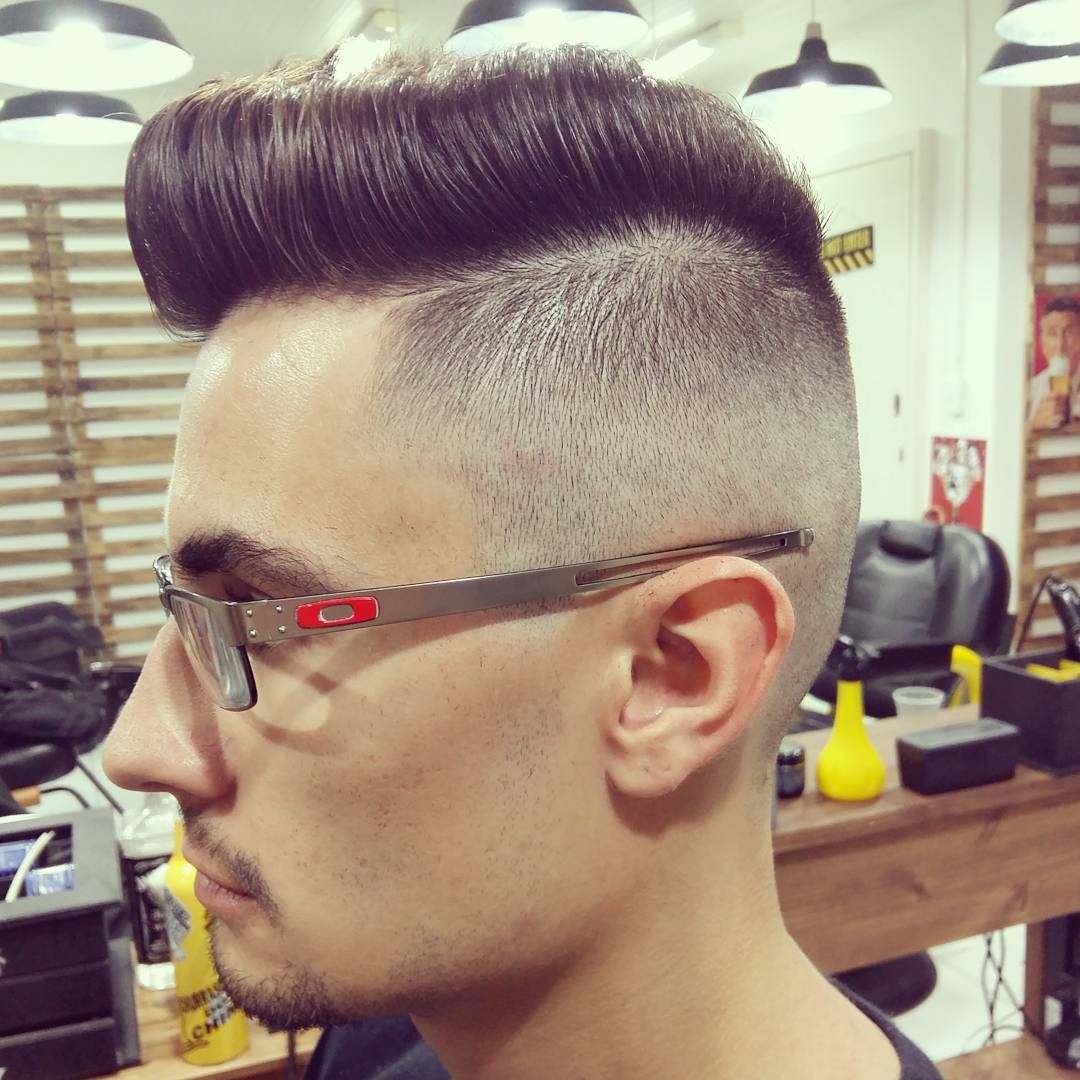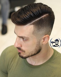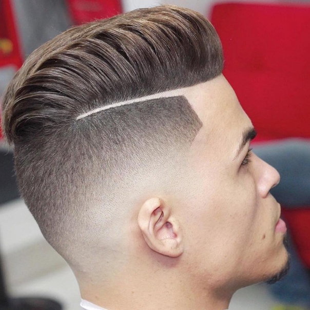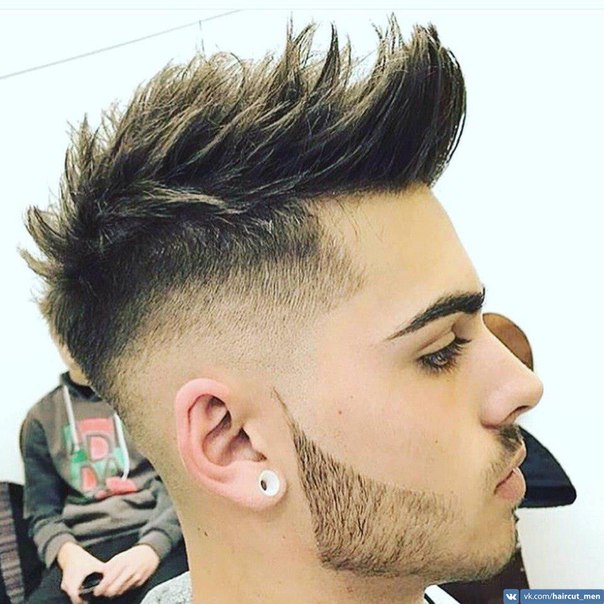 Хорошо сочетается с бородой, усами. В этом случае у висков с помощью укладки создается эффект густых волос. - Креативная — с более выраженным контрастом между короткими и длинными прядями. Длинные волосы при этом зачесываются назад, формируя сильный объем. Такой «хохолок» визуально увеличивает рост и вытягивает лицо. Стилисты предлагают современные варианты с плавным переходом в «undercut» и подчеркнутым пробором. В этом случае допустимо выбривание висков и затылка. Можно использовать постепенный переход от максимально коротких к длинным волосам и на затылке.