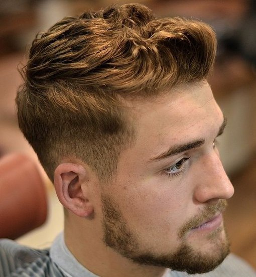 Хорошо сочетается с бородой, усами. В этом случае у висков с помощью укладки создается эффект густых волос.