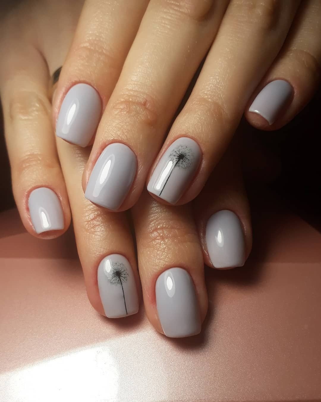 Художественная акварель, тонкие линии и изысканные сочетания цветов на полупрозрачном светлом фоне ногтей — это всегда выигрышная идея маникюра. Вообще, не надо себя ограничивать в рисунках — веселые или геометрические принты, цветочные поляны или абстракция уместны в маникюре в любое время года. А светлый цвет ногтей послужит отличным фоном для них.