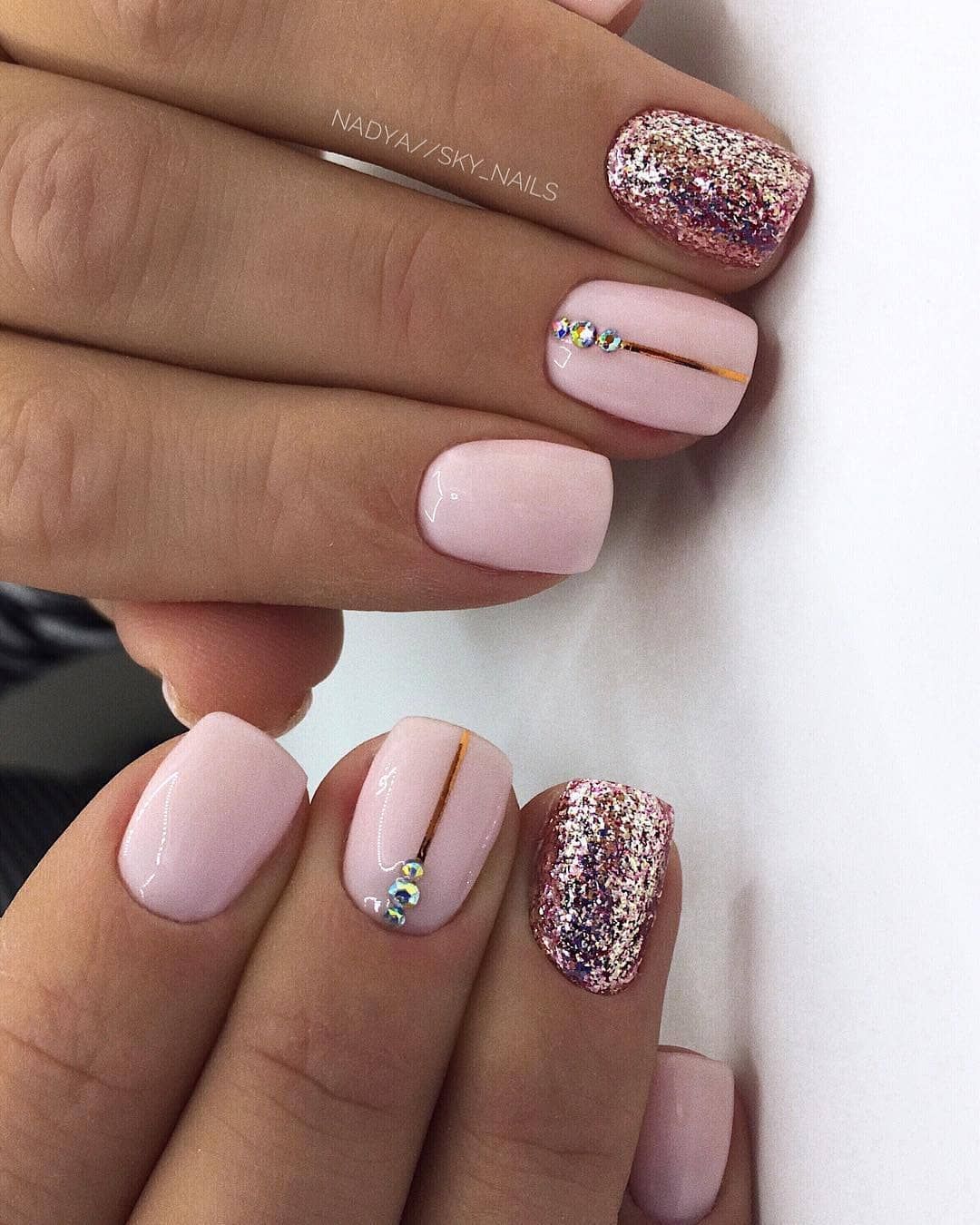 Стразы, глиттер, шиммер и блестки в светлом маникюре