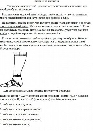 - если покупается зимняя или осенняя обувь, при замере надо учитывать толщину носка или колготок.