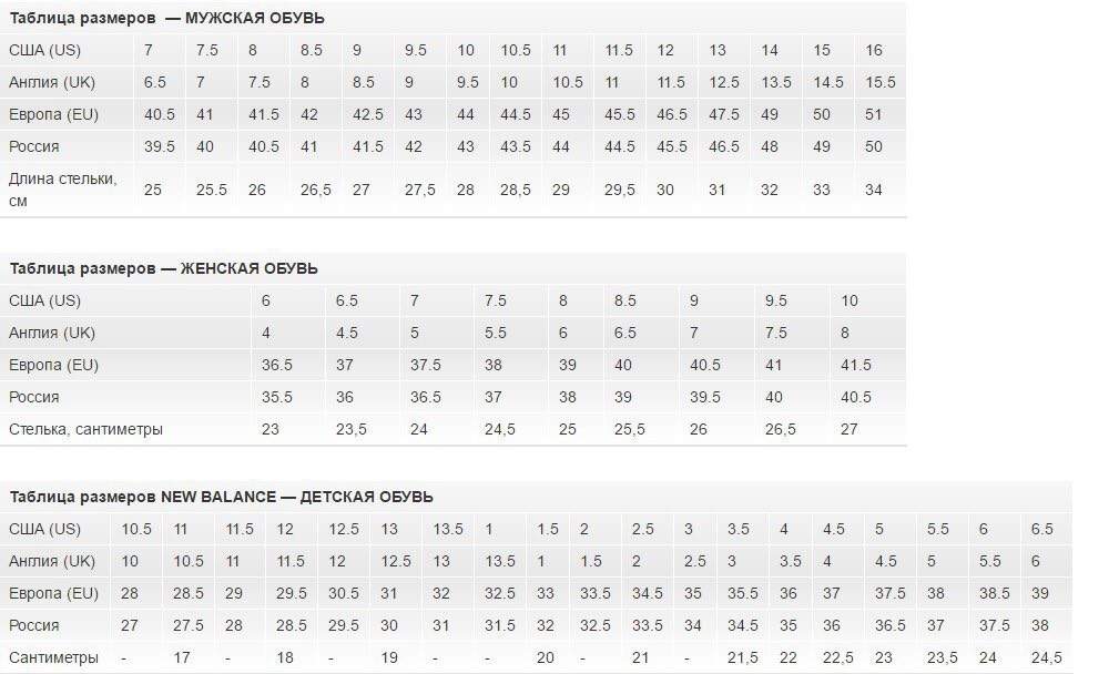 Π’Π°Π±Π»ΠΈΡΡ ΡΠ°Π·ΠΌΠ΅ΡΠΎΠ² ΠΎΠ±ΡΠ²ΠΈ