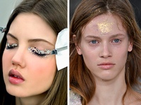 Немного менее кричащий кузен-мерцаниеGlitter также занял центральное место в тенденциях макияжа осень / зима 2018-2019.