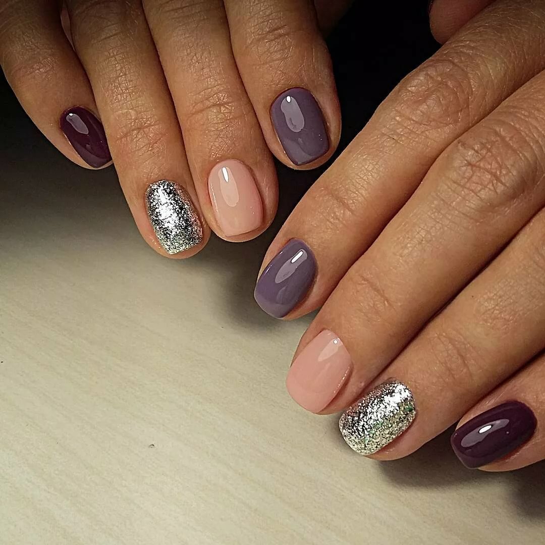 - Лаки с блестками. Фольгированные блестки разной степени помола дают возможность создавать плотный мерцающий слой. Его необходимо хорошо распределять и запечатывать топом, чтобы не было сколов.