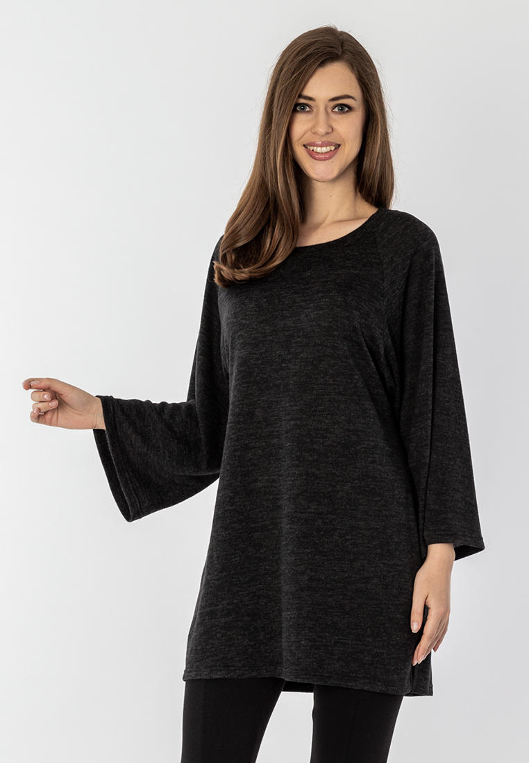 Еще одним согревающим элементом женского гардероба может стать туника — джемпер или туника — свитер, который одевается через голову. Может иметь фасон по фигуре, прямой покрой или оверсайз. Рукава такая туника женская, как правило, имеет длинные, может иметь капюшон и карманы. Ворот может быть под горло, V, U образный или высокий. Шьется чаще всего из плотного трикотажа, шерсти, мохера. Туника может быть отделана меховыми или кожаными вставками.