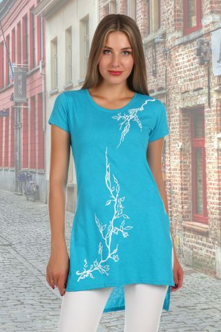 Туника женская в виде футболки также рассматривается как спортивный или полу спортивный вариант, с той лишь разницей, что имеет небольшие рукава прямого или узкого фасонов. Такая туника может быть дополнена карманами или капюшоном. Кстати для летней непринужденной прогулки отлично подойдет туника — футболка удлиненного варианта, как самостоятельный элемент гардероба под шлепки, босоножки или легкие кроссовки.