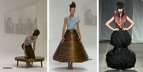 Дизайнер выделялся своими часто удивительными экспериментами, начиная с его первой коллекции Buried Dresses из бумаги, переплетенной ржавой проволокой.