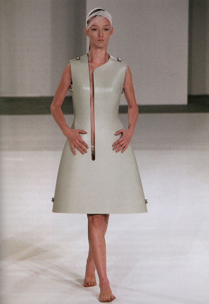 «Единственная новая работа, которую вы можете делать в моде, — это с помощью технологий», — сказал однажды Чалаян. «Это позволяет вам создавать то, что вы не могли сделать в прошлом». Трансформация — одна из любимых тем Чалаяна. Опытный портной и раскройщик, он показал одежду Tyvek, которую можно было сложить и отправить по почте. Подиумные модели уходили со сцены буквально в мебели для гостиной (складная деревянная юбка для журнального столика из коллекции Fall 2000 — одна из его самых известных вещей).