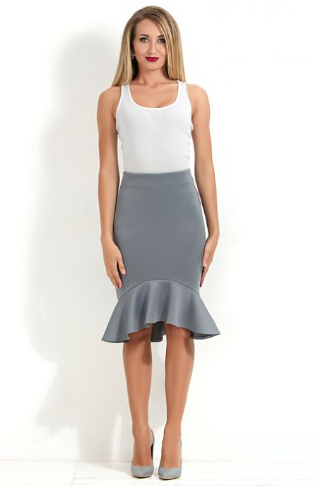 Юбка карандаш с воланом внизу: с воланами внизу, вязаная крючком, пышные модели, с чем носить, джинсовые и прямые