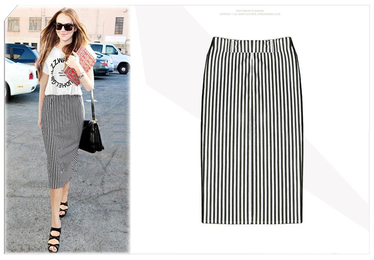 Абсолютно всем девушкам подойдет изделие в полоску средней длины и разного фасона. Модель может быть чуть выше колен либо ниже колена на 14 см.