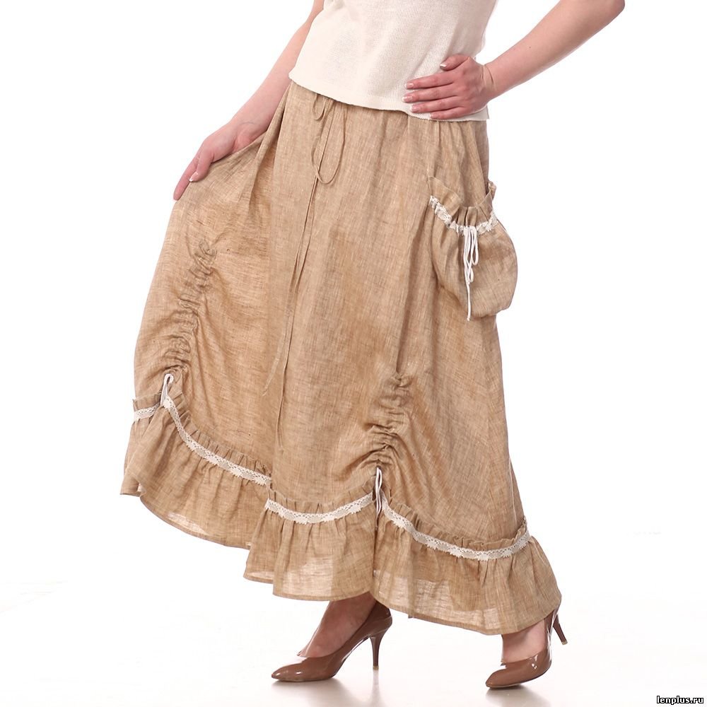 Юбка данного стиля сдержанного цвета, украшается пуговицами из дерева и бахромой, шьется из натурального материала (лен, твид, хлопок и шерсть). Девушки, предпочитающие такие вещи, также ходят в юбках из денима, великолепие которых акцентируют традиционные рисунки, деревенские и клетчатые узоры, фрагменты во флористическом дизайне.