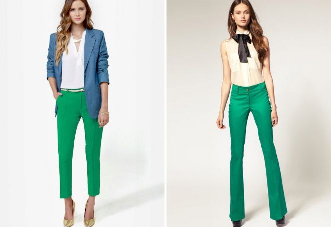 Зеленые брюки (68 фото): классические, широкие или зауженные, как сочетать цвета