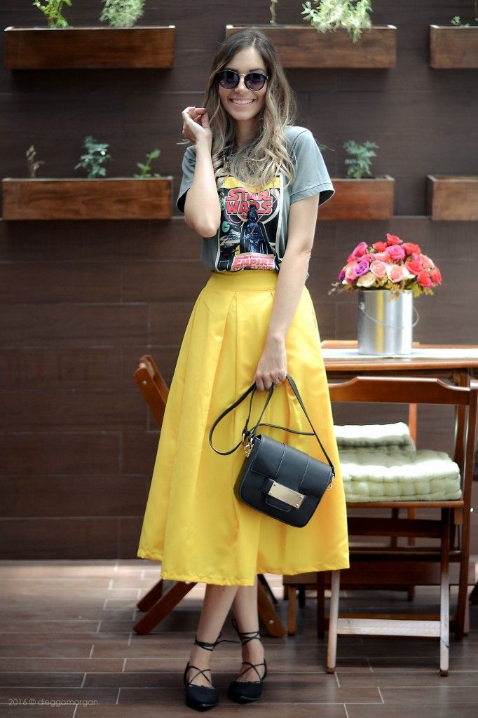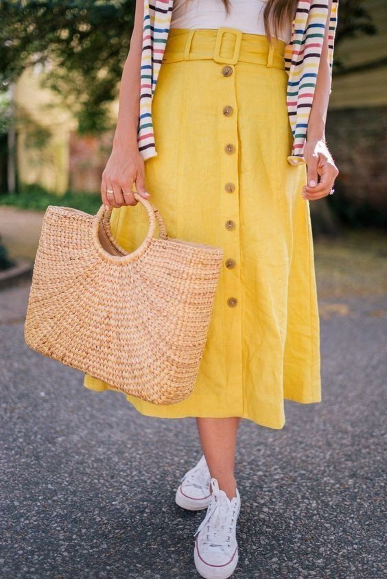 С чем носить желтую юбку (67 фото): образы для зрелых, пышных и юных модниц, подбираем обувь и аксессуары, с какими цветами сочетать желтый