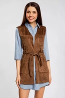 - Безрукавка рубашечного стиля внешне очень напоминает классическую модель. Бывают разной длины, чаще всего – до середины или чуть ниже бедра