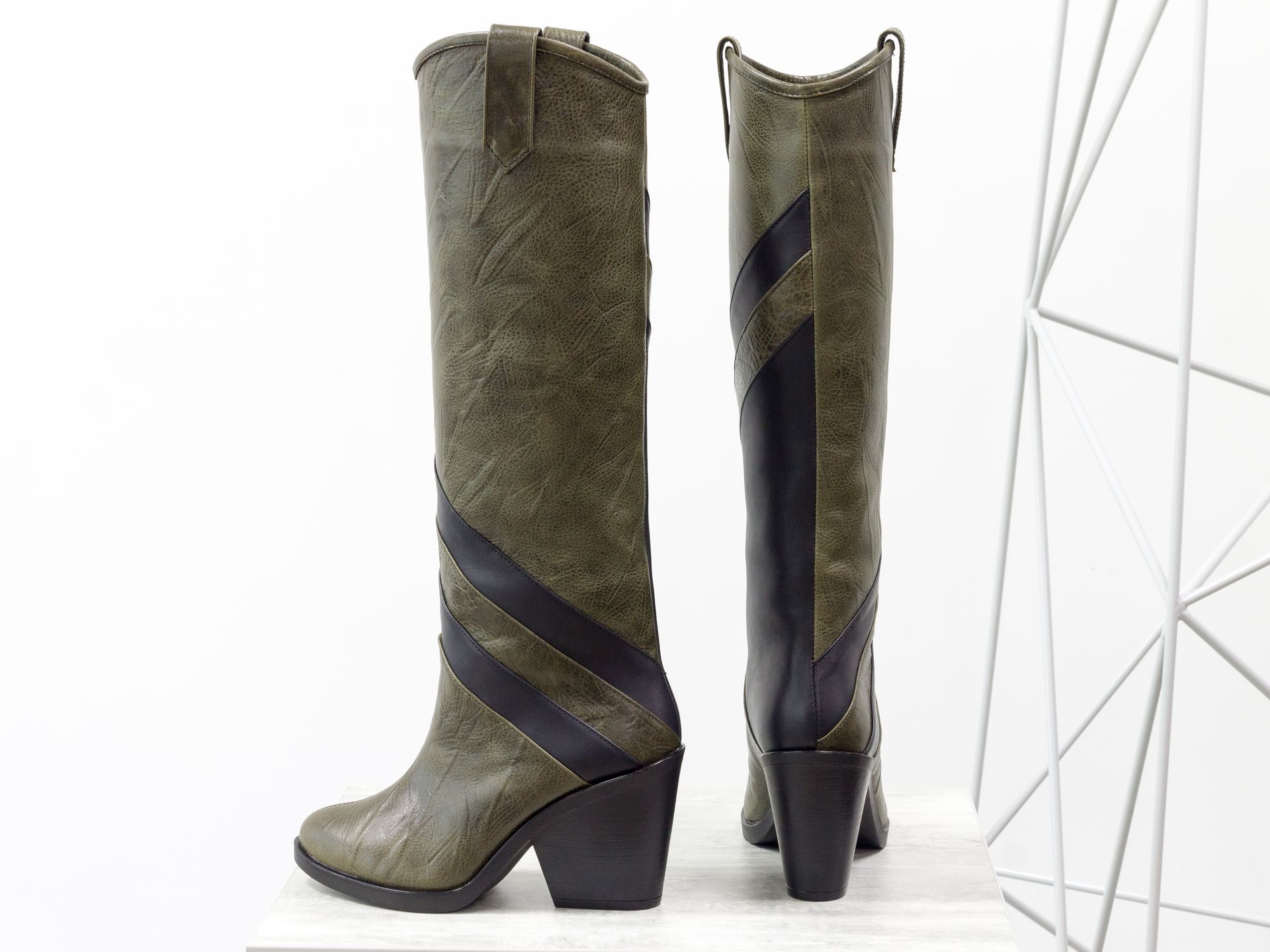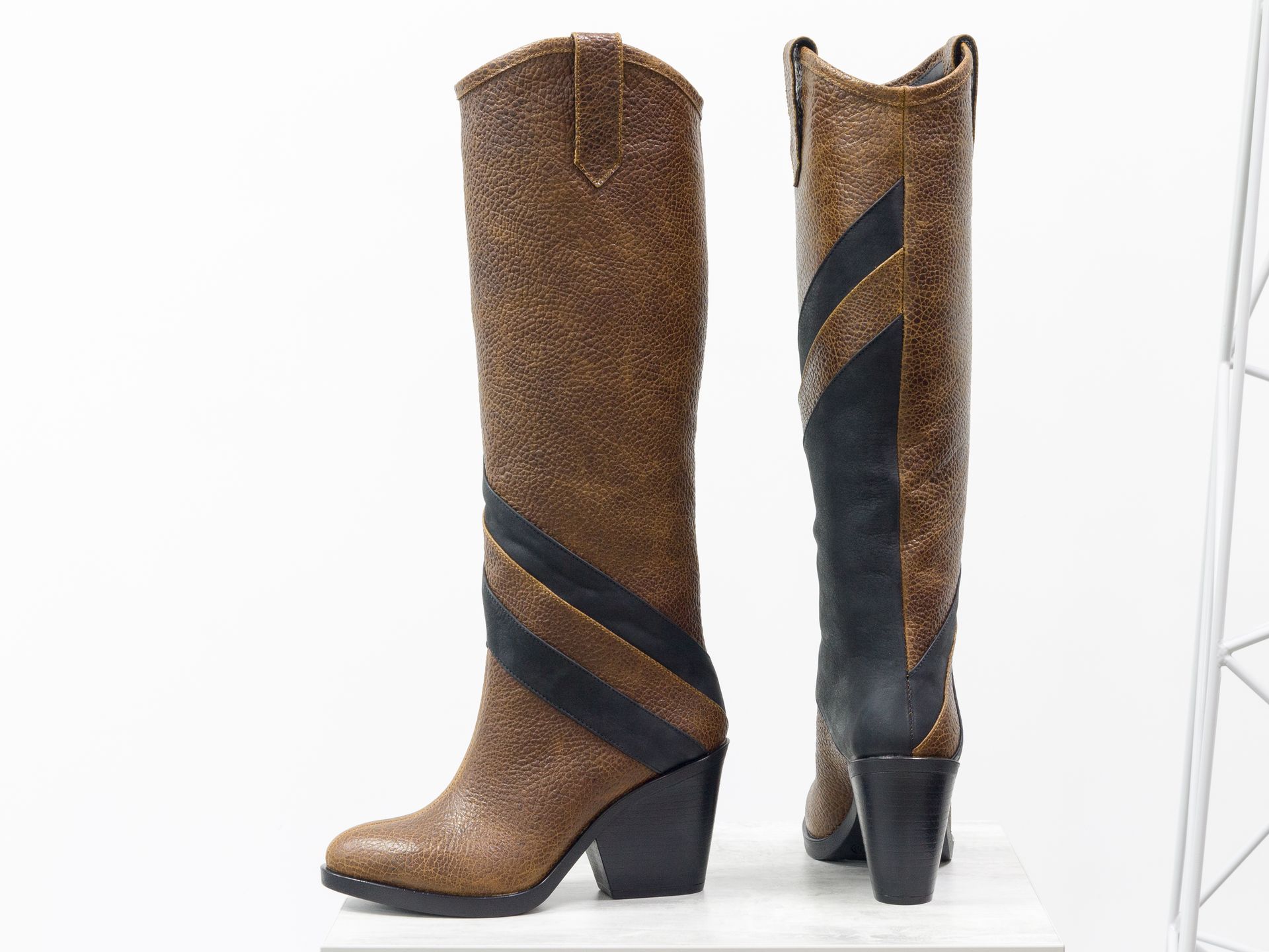 Сапоги казаки отличаются от остальных моделей широким голенищем, узким носом и обязательно немного скошенным каблучком. Девушки заимствовали данный элемент гардероба из основного гардероба казаков. Заимствование, можно сказать, было очень удачным и пришлось по душе всем девушкам без исключения.