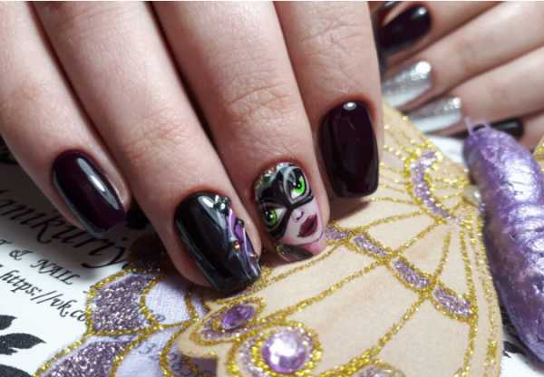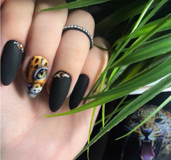 Маникюр осень – зима 2019-2020 с дизайном рисунком, стразами: фото