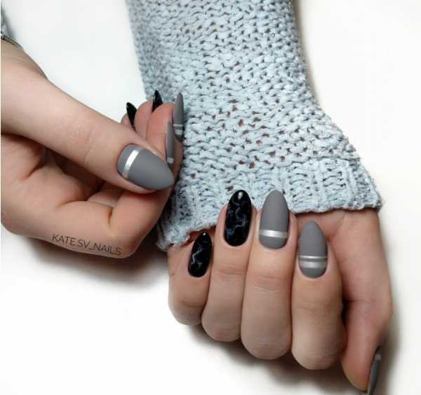 Осенью и зимой 2018 года серый маникюр становится более популярным. Это цвет идеально подходит под любую форму и размер ногтей. Его можно сочетать с другими цветами, что делает серый маникюр еще более привлекательным.