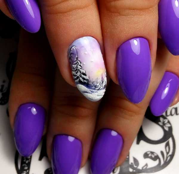 Кстати, истинные мастера нейл-арта порадуют своих клиенток изумительными вариантами осенне-зимнего маникюра с пейзажными рисунками. В подобном маникюре осень-зима маленькие полотна чаще украшают отдельные ноготки.