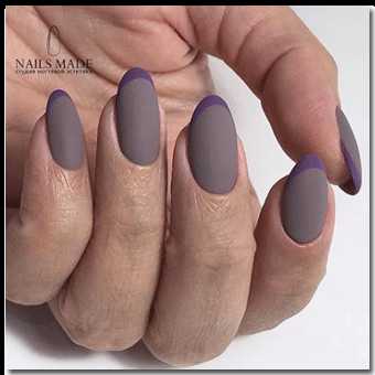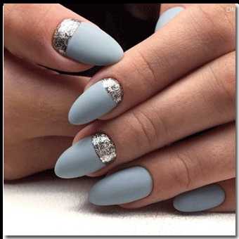 Этот вид нейл-арта может быть дополнен окрашиванием кончика одного из ногтей контрастным матовым металликом. К примеру, можно подобрать серебряный цвет, а на безымянном пальце сделать полосочку матового цвета другого оттенка.