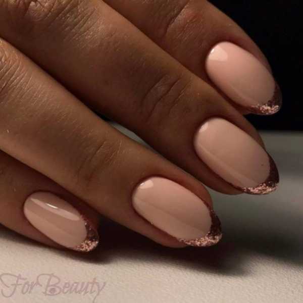 Кроме классических вариантов, эксперты рекомендуют воплощать различные креативные фантазии. Красиво будут смотреться варианты френча в золотом оформлении.
