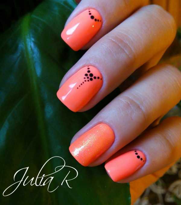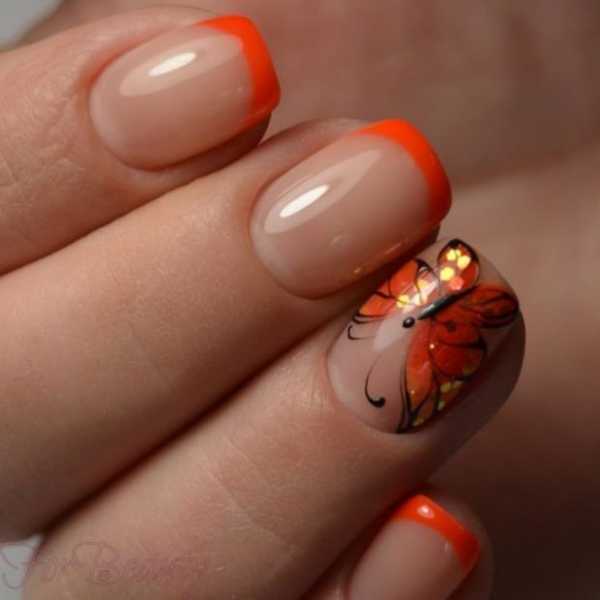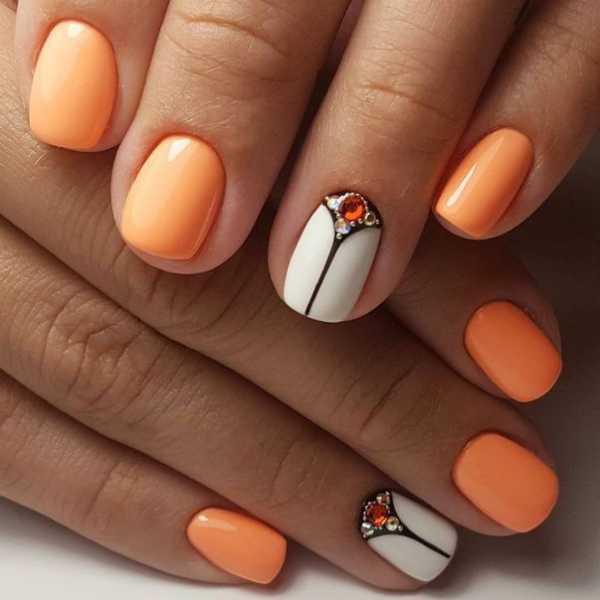 Популярным будет покрытие оранжевым шеллаком. Осенью такой оттенок гармонирует с листопадом, летом дополняет сочную палитру, а холодной зимой заряжает энергией и дарит хорошее настроение.