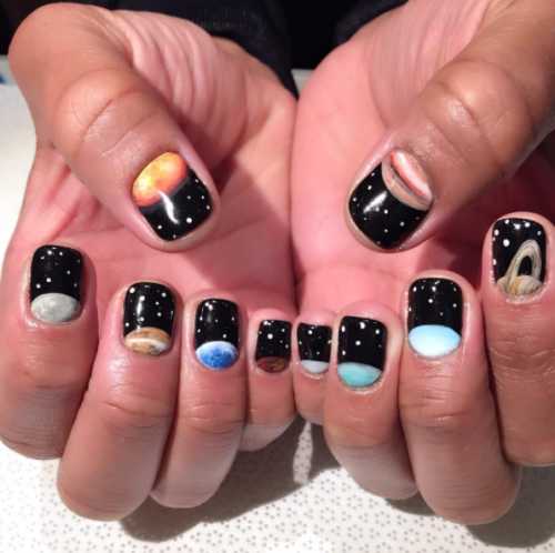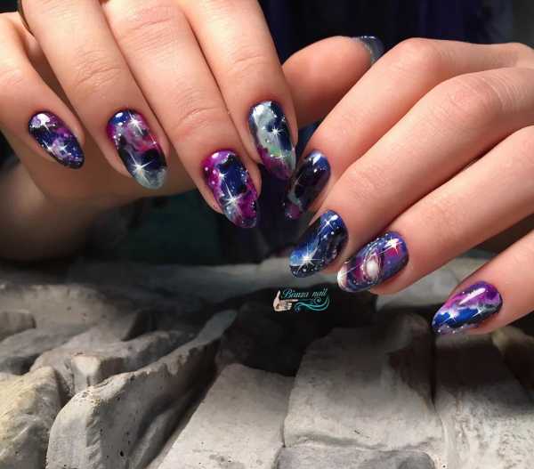 Модный космический маникюр шеллак — фото