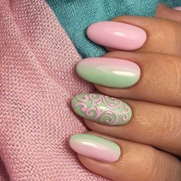 Актуален дизайн ногтей гель лаком, в котором рисунок сочетается с техникой омбре или градиентом. Самый востребованный в салонах маникюр обязательно имеет мотивы морозных узоров, серебристые и золотые детали. Практически все орнаменты сезона осень 2019 выполнены в геометрическом стиле с четкими гранями и границами. Общее правило осенне-зимнего периода этого года: маникюр с узорами и рисунком не должен содержать оттенки более чем трех цветов.