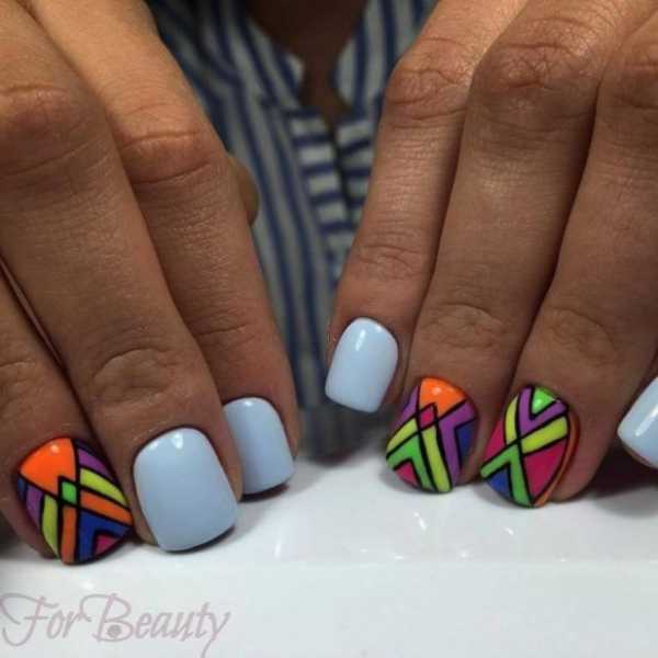 Маникюр будущего года обещает сохранить любовь к графическим композициям — разноцветные геометрические фигуры выполняются несложно, а смотрятся великолепно, напоминая шедевры абстрактной живописи.