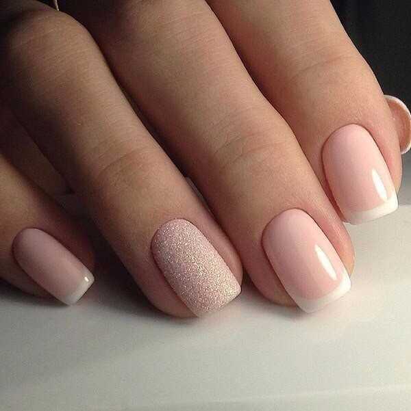 И лунный маникюр, и френч приветствуют игру с фактурами: вы можете комбинировать глянцевую и матовую поверхности, использовать металлик, шиммеры, песок, пудру.
