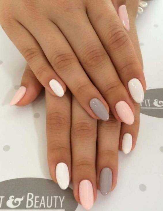 - модные цвета маникюра, предлагаемые на фото, представлены актуальными оттенками: белого, бежевого, молочно-кофейного, розового, персикового, жемчужного, серого, синего, черного;