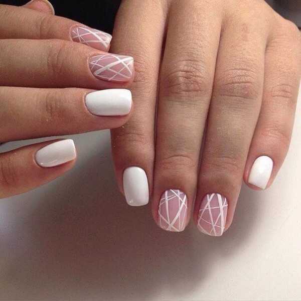Традиционно принято считать, что рисунки в подавляющем большинстве предназначены на длинные ногти, однако модный тонкий кружевной дизайн идеально подойдет на короткие ногти. Геометрический принт с продольными полосками визуально удлиняет ногти и пальцы, рука выглядит изящней. Эта особенность прекрасно используется дизайнерами в работе с короткими ноготками.