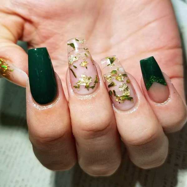 Вы можете использовать основу и фольгу контрастных цветов. Отлично будут смотреться кусочки любого цвета на черном фоне – такой прием придаст маникюру праздничное настроение и выразительность.