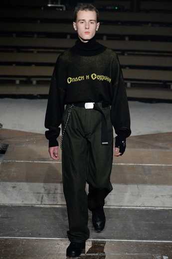 Взбудоражил мировую общественность свитшот бренда Heron Preston с надписью «стиль» на русском языке.