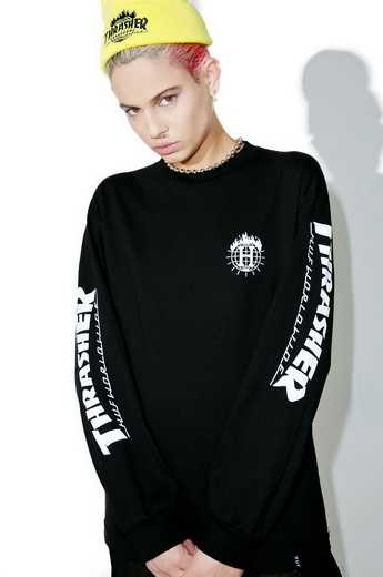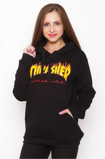 Женские свитшоты бренда Thrasher («Трэшер») смотрятся невероятно изящно благодаря оригинальному логотипу и ярким оттенкам.