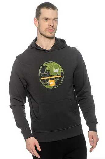 Топовая модель – черная толстовка со схематическим изображением горного склона и логотипами обеих компаний.