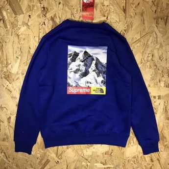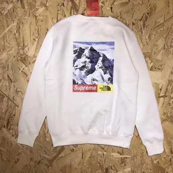 Не менее востребованы яркие толстовки с фотоизображением горных вершин. Свитшоты из коллаборации Supreme x The North Face прекрасно сочетаются с ветровками, анораками и пуховиками этой линейки.